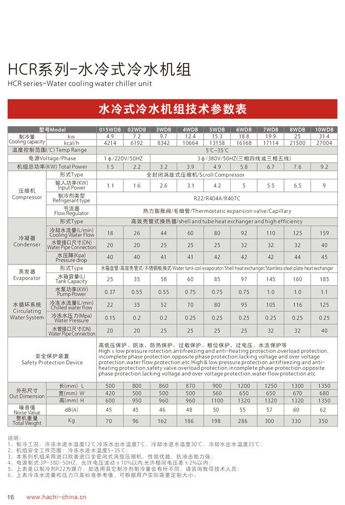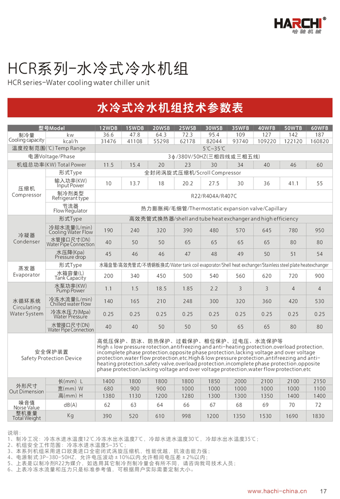 產(chǎn)品特點(diǎn)Features: 1、采用國際最先進(jìn)的渦旋式或活塞式壓縮機(jī),電器及制冷系統(tǒng)原器件全部為世界著名品牌; 2、冷卻水泵及管路系統(tǒng)全部采用不銹鋼材質(zhì),確保水質(zhì)更潔凈,使用壽命更長久、制冷效果更穩(wěn)定; 3、水冷系列需要配置冷卻水塔及冷卻水泵,冷水機(jī)放置在室內(nèi),噪音比較低,制冷效果更好。水冷冷水機(jī)安裝好以后不能移動(dòng),應(yīng)用于通風(fēng)散熱不是很好的環(huán)境; 4、機(jī)組采用進(jìn)口高精度電子顯示器,內(nèi)置P.I.D 自動(dòng)演算功能,啟動(dòng)延時(shí)功能,控溫精度在±0.5℃范圍內(nèi),且控制溫度范圍在3℃~40℃之間; 5、為保證使用安全,機(jī)組內(nèi)置漏電保護(hù)器、相位保護(hù)、過載保護(hù)、電流保護(hù);系統(tǒng)安裝了高、低壓保護(hù)傳感器,為防止缺水或循環(huán)水系統(tǒng)內(nèi)部結(jié)冰,機(jī)組安裝了流量開關(guān)和低液位保護(hù)裝置。